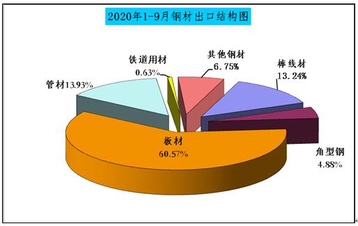 2020年1-9月份钢材、钢坯进出口走势 9月份中国进口钢坯279.3万吨仍处高位,钢材进口288.5万吨,较上月增加64.4万吨,6-9月份连续四个月我国为粗钢净进口,并且净进口量逐月增加。 图1:折成粗钢月度净出口 一、钢材、钢坯进出口情况 1、钢坯进口情况 2020年9月进口钢坯279.3万吨,进口平均价格为446.3美元/吨,较上月增加36.5美元/吨,1-9月份钢坯进口1416.7万吨,同比增长932%,进口平均价格为431美元/吨,其中普方坯和普板坯分别进口750.3万吨和523.4万吨。1-9月份钢坯出口1.48万吨。 2020年1-9月份普方坯进口主要来自印度、俄罗斯联邦、越南、伊朗、马来西亚、乌克兰、印度尼西亚、阿曼、日本、哈萨克斯坦、韩国、阿联酋和巴西,分别进口202.8万吨、127.3万吨、102.5万吨、81.6万吨、74.8万吨、39.3万吨、35万吨、26万吨、16.8万吨、12万吨、9.4万吨、8.1万吨和7.7万吨。 2020年1-9月份普板坯进口主要来自俄罗斯联邦、巴西、越南、阿联酋、印度、印度尼西亚、日本、伊朗、墨西哥、韩国、乌克兰、沙特阿拉伯、哈萨克斯坦和阿曼,分别进口141.1万吨、91.2万吨、59万吨、35.4万吨、34.7万吨、33万吨、31.2万吨、26.7万吨、23.1万吨、14.7万吨、8.7万吨、7.7万吨、6.9万吨和5.5万吨。 2、钢材进出口情况 2020年9月钢材出口383.5万吨,同比降低28.1%,出口金额同比降低22.2%,1-9月份钢材出口4038.6万吨,同比降低19.6%,出口金额同比降低20.4%;9月份进口钢材288.4万吨,同比增长158.5%,进口金额同比增长62.6%,1-9月份进口钢材1507.3万吨,同比增长72.2%,进口金额同比增长18%。 9月份钢材进口保持高位,9月份钢材净出口94万吨,9月份进口钢坯279.3万吨,进口钢锭4345吨,出口钢坯钢锭779吨,折成粗钢9月份净进口179.5万吨,较上月的净进口增加10万吨,6-9月份粗钢净进口量连续四个月不断增加。 1-9月份钢材净出口2531.3万吨,钢坯进口1416.7万吨,钢锭进口5.1万吨,钢坯、钢锭出口1.6万吨,1-9月份折合成粗钢净出口1263万吨。 从贸易额看,1-9月份钢材进口贸易额122.6亿美元,出口贸易额332亿美元,进出口贸易总额顺差209.4亿美元。9月份进口单价为688.1美元/吨,较上月降低20.2美元/吨,与去年同期相比降低412美元/吨,出口单价为907.3美元/吨, 9月份出口单价再次超过进口单价218.2美元/吨。 图3:钢材月度进出口价格走势图 按贸易方式分,1-9月份出口钢材中一般贸易出口3874万吨,占出口量的95.9%,1-9月份进口钢材中一般贸易进口1262.2万吨,占钢材进口量的83.7%,进料加工贸易进口157.8万吨,占进口量的10.5%。 分国家/地区进出口 从分国家/地区进口情况看,9月份主要进口国家和地区是韩国、日本、中国台湾、印度、马来西亚、越南、乌克兰、印度尼西亚和俄罗斯联邦,分别进口56.2万吨,53.5万吨、39.6万吨、36.6万吨、25.4万吨、14.5万吨、11万吨、10万吨和8.1万吨,从上述国家/地区进口占9月份进口量的88.4%。其中从印度进口平均价格为449.6美元/吨,马来西亚进口平均价格为430.8美元/吨,乌克兰进口平均价格为398.7美元/吨,俄罗斯进口平均价格为408.2美元/吨,从这些国家进口的钢材大幅拉低了进口平均价格。 1-9月份钢材主要进口自韩国、日本、印度、中国台湾、马来西亚、印度尼西亚、德国、俄罗斯联邦、哈萨克斯坦、越南、乌克兰、瑞典和荷兰,分别进口390.8万吨、359.1万吨、170万吨、150.6万吨、136.9万吨、60.8万吨、39.9万吨、28.1万吨、27.6万吨、24.7万吨、23.9万吨、12.8万吨和11.9万吨,进口中国产钢材10.9万吨。2019年1-9月份从日本、韩国、中国台湾进口占进口量的83.8%,今年1-9月份从日本、韩国和中国台湾进口仅占进口量的59.7%,而从印度、马来西亚和印尼的进口分别占到了11.28%、9.1%和4.2%。 图4:钢材分国别进口对比 从分地区钢材出口情况看,1-9月份出口亚洲2777万吨,占出口量的68.8%,出口非洲471万吨,占出口量的11.7%,出口欧盟175万吨,占出口量4.3%,出口南美秘鲁、智利和巴西三个国家的数量为203万吨,占出口量的5%,出口美国、墨西哥和加拿大三个北美国家的数量在106万吨,占出口量的2.6%。 从具体的分国家/地区出口情况看,1-9月份出口量比较大的国家是韩国、越南、泰国、菲律宾、印度尼西亚缅甸、沙特阿拉伯和阿拉伯联合酋长国,分别出口了437.8万吨、330.6万吨、298.8万吨、224.3万吨、155.5万吨、133.1万吨、126.5万吨和108.9万吨。 1-9月份出口量在70万吨以上的国家和地区有巴基斯坦、印度、马来西亚、中国香港、秘鲁和智利,出口尼日利亚、日本、中国台湾、新加坡、巴西、孟加拉国、美国、美国、俄罗斯联邦和土耳其的数量在50万吨以上,出口意大利、加纳、埃及、澳大利亚、哥伦比亚、肯尼亚、乌兹别克斯坦、南非和科威特的数量在30万吨以上,出口蒙古、墨西哥、伊朗、西班牙、加拿大、加拿大、伊拉克、厄瓜多尔、坦桑尼亚、乌克兰、比利时、阿曼、吉布提、以色列和危地马拉的数量在20万吨以上,出口斯里兰卡、阿尔及利亚、洪都拉斯、卡塔尔、苏丹、老挝、科特迪瓦共和国、哈萨克斯坦、荷兰、哥斯达黎加、安哥拉、柬埔寨、也门共和国、德国、多米尼加共和国、莫桑比克、摩洛哥和几内亚的数量在10万吨以上。 钢材分品种进出口 从钢材分大类品种的出口看,1-9月份板材出口2446万吨,占钢材出口量的60.6%,管材和棒线材出口分别出口562.4万吨和534.7万吨,分别占钢材出口量的13.9%和13.2%,角型钢出口197.3万吨,占钢材出口量的4.9%。 1-9月份