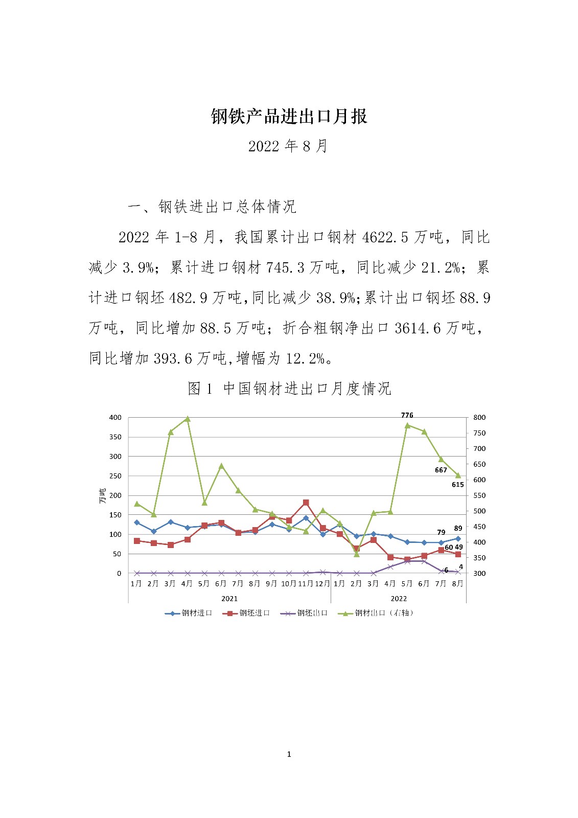 2022年8月钢铁产品进出口月报